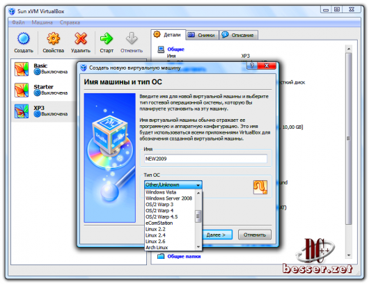 Всё просто!- это новый ПК. Хотите увидеть работу XP SP3 или Windows7, но не хотите удалять свою Windows? Понятное дело - попробовать, проверить. VirtualBox позволит прямо из под Windows создать второй компьютер, на который вы как на настоящий установите Windows или, например, Linux, а то и MacOS (если у вас процессор Intel). C такой виртуальной системой можно делать всё что угодно - эксперементировать с драйверами, выделять под неё больше или меньше ресурсов, устанавливать новые сборки и любые программы, делать скриншоты или просто работать. Мастер программы поэтапно поможет установить гостевую ОС. Покинув виртуальную машину вы возвращаетесь на свою домашнюю ОС. Причем, в "реальности" вся Гостевая ОС выглядит как папка, и не затронет Домашнюю ОС. VirtualBox - незаменимая для эксперементатора и тестировщика софта штука, позволяющая устанавливать множество OC. Русскоязычная. Бесплатная. Август 2009. Поддержка Windows 7. OC: Windows XP/Vista. Ключевые возможности VirtualBox: